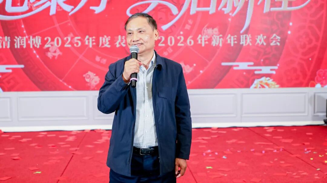 伍德民董事长随后致贺词,肯定清润博在自主研发与国际化布局等方面取得的突破,并指出新的一年是深化发展、聚焦核心技术的关键时期。最后,他举杯祝愿清润博在新征程中继续开拓进取,再创佳绩。